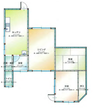 居間と和室二間と水回りというシンプルな間取りになります。